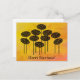 Grattis på födelsedagen mot en hösthimmel fylld med träsnittsträd.