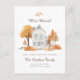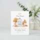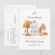 Det söta höstliga flyttmeddelandekortet har vackra, handmålade akvarellhus och höstträd. Personalisering finns tillgänglig på framsidan och baksidan av vykortet.