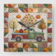 Rustic Wall Art för ditt hem. Jordbrukshuset Stil Wall Clock har en historisk charm med sin gamla gård Lastbil, som håller på att ta med sig pumpor. Det är Land Chic med sitt Patchwork Quilt-utseende. Pumpkins är redot för skörd, och Träd ligger i fullt hösten Färg. Quilt är Faux och Simulated.