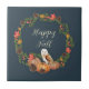 Höstuggla och pumpor med anpassningsbar text kakelplatta