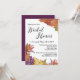 Söt vattenfärg löv gräns i eleganten och det moderna bröllop inbjudningskort för möhippan. Lila, röd, brun, gult och grönt visas. Olika typer av löv finns också med, t.ex. äpple och akorn. Det här är perfekt för bröllop under höstsäsong. Kortets baksida är en plommonlila. Du kan ändra färg genom att klicka på Anpassa det. Du kan lägga till ytterligare information på baksidan, t.ex. registerinformation för bröllop eller en länk till parets bröllop webbplats.
