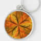 Höstväxt, Modern Abstrakt Fractal Art Löv Rund Silverfärgad Nyckelring
