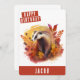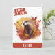 Ett sött färgfödelsedagskort med en badger som firar hösten på framsidan med "Grattis på födelsedagen" i ett vitt, fetstilt teckensnitt med versaler. Anpassa fronten genom att lägga till ditt/dina namn. Kortets baksida har plats för det skrivna eller handskrivna meddelandet.