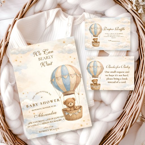 Hot Air Balloon Teddy Bear Baby Shower Inbjudningar