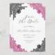 Complement your hot pink and black wedding party with these beautiful save the date cards featuring elegant floral lace.