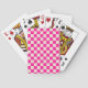 A pink and cream checkerboard pattern covers the entire image, creating a vibrant, energetic feel. The repeated squares are evenly arranged.