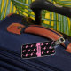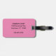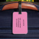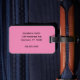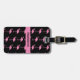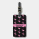 Bright pink cartoon flamingos stand against a black background, creating a luggage tag that is cute and fun! Easy to spot on a luggage cart or carousel.