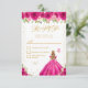 This elegant and glamorous sweet sixteen rsvp card features a beautiful princess with blonde hair and fair skin in a hot pink ball gown. The text combines handwritten script and modern sans serif fonts for a classy and sophisticated look. The floral arrangements, butterflies and gold confetti create the perfect blend of rustic and chic.