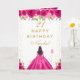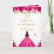 Hot Pink Floral Dark Skin Girl Birthday Kort