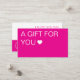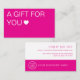 A warm, inviting hot pink gift coupon designed to make your spa or salon clients feel truly valued. Opens with “A GIFT FOR YOU ❤️” and includes a customizable discount offer ($20 off over $100), validity date, and your logo. Perfect for client appreciation—turns a simple discount into a personal, memorable gesture.