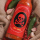 The skull graphic with a red background for homemade hot sauce. You can personalize the details of the maker, phone number, website, social handle, date of manufacturing, and net weight. This homemade custom hot sauce label is fully editable.