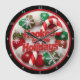 Detta är en proaktiv, cirkelformad grafisk design med ett kreativt tema. Formgivningen är centrerad kring frasen "Hooking for the Helgdagars" i ett fet, rött, mousserande teckensnitt. Texten placeras över en bakgrund av garnhärvor i olika färg, inklusive rött, grönt och grädde. Två stora polkagrisar och stort vitt snöflingor ingår också i utformningen. Hela scenen ramas in av en röd hjärnhals. Den totala estetien är glad, mysigt och perfekt för stickare och hantverkare under julhelgen.