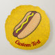 Tecknad illustration av hotdog. Skräckmatets dispositionsikoner i gultens mönster-bakgrund. Anpassningsbar på båda sidor.