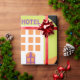 An icon of a hotel building with the word hotel above it. This design looks really effective on this Wrapping Paper