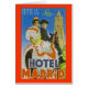 Vintage resor poster för Hotel Madrid, Sevila visar ett traditionellt flamenco-par mot katedralspiren.