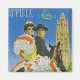 Vintage resor poster för Hotel Madrid, Sevila visar ett traditionellt flamenco-par mot katedralspiren.