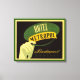 Vintage illustration Europeiskt resposter konst eller bagagelapp från Hotel Metropol, Budapest, Ungern. En hand med en formell vit handske som håller en grön och gul bellhoppar hatt eller mössa.