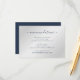 Informera dina gäster om hotellboende eller ge dem andra detaljer om bröllopet med detta minimalistiska informationskort i marinblå och silverfärg. Anpassa enkelt online. Matchande artiklar finns tillgängliga för att komplettera detta eleganta marinblå och silverfärgade inklusionskort.