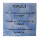 Handdukbeskydd undertecknar för ett hotell. Behaga hängninghanddukar som du ska använda igen. Handdukar på det ska golv byts ut. Tacka dig för portion oss fruktkonserven.
