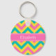 HotPink2 Teal Pineapple LG Chevron Namn Monogram Nyckelring
