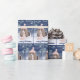 Cute hound hund med God jul text, rosa bockkapsyl och scarf i snö.