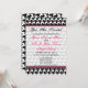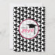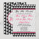 En unik examensinbjudan med svart-vit hundtandsmönstrad kant överst och nederst med het rosa trimning. Rosa och svart text. Personliggör med detaljer om din egen händelse. Baksidan har enfärgad hundtandsdesign. Texten inuti rosa cirkelformad ram lyder "Class of 2010" i rosa och svart med en illustration av en svart examenshatt. Perfekt för den modeintresserade studenten. Sök efter matchande artiklar i avsnittet "graduation shop" i The Pink Schoolhouse-butiken.