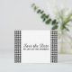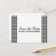 Enkel men elegant Houndstooth Spara datum vykort med ett trendigt svartvitt houndstooth mönster i bakgrunden. Lätt att anpassa med dina bröllopsdetaljer. För fler anpassningsalternativ, klicka på knappen Anpassa.