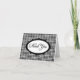 Det här kortet är ett underbart tillägg till ditt papperspaket. En svart och vit houndstooth mönster ge, en mycket elegant men ändå enkel bakgrund till ord "Tack". En ren vit ovalcirkel är värdar för känslan av "Tack" i en fast svart oval ram. Kortet har en tom insida för en personlig handskriven anteckning eller kan anpassas med tryckt text till kostym som du behöver. Perfekt när som helst, det står "Tack" med klass. Särskilt lämplig för manliga behov.