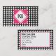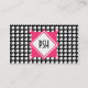 En visitkort som presenterar en houndstoothbakgrund med ett retro, kvadrerar diamantdesign. Motsatssidan presenterar houndstoothgränsen med rosa brytningar. Tillfoga din egna information. Använd designverktyg för att ändra, tillfoga eller ta bort någon designer eller text. Stilsortsfärg, formatet, stil, och placerar kan också ändras. Klicka precis "skräddarsy den!",