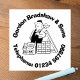 Byggaren Rubber frimärke till ett företag som bygger varor eller till en byggare. Roligt tecknad stil illustration av en General Builder med Byggnad Materials. Anpassa med din egen formulering och kontaktuppgifter. Frimärke information om reklammaterial eller företagsdokument. Företag frimärke för en byggare.