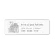 Anpassningsbar-designade returetiketter med ett hus i hand plockade stil med porträtt med er familj namn och adress.