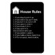 Du kan använda den här svarta kylmagneten för att visning regler på kylskåpet. Det finns ett vitt hus. I den vita visningen bredvid huset står det: "House Regler under dem båda är nio regler: 1. Om du släpper den, plocka upp den. 2 Om du tar ut den, lägg tillbaka den 3. Om du slår på den, stäng av den. 4 Om du öppnar den, stäng den. 5 Om du bryter den, laga den. 6 Om du inte kan fixa det, hitta någon som kan. 7 Om du smutsade ner den, tvätta den. 8 Om du gör en , rengör den. 9. Om det inte är ditt, lämna det ensamen.