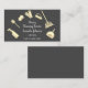 Affärskortet för städning tjänster är dekorerat med städning leveranser från guld-färgad. Bästa för kommersiella tjänster eller bostadstjänster för städning, husdjursskötare, stödtjänster, hemtjänster och humanitära tjänster. florenceK-design