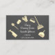 Affärskortet för städning tjänster är dekorerat med städning leveranser från guld-färgad. Bästa för kommersiella tjänster eller bostadstjänster för städning, husdjursskötare, stödtjänster, hemtjänster och humanitära tjänster. florenceK-design