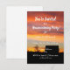Inbjudan till uppvärmningspartiet som ger fotobilden av en färgstark och dramatisk solnedgång med en hussilhuett. Anpassa din inbjudan genom att fylla i och ersätta text med din egen party-information. Du kan också välja inbjudan stil och papper typ.