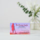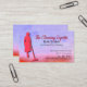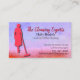 Huset städning affärskort i en lila och färg-tittar, och med bilder av en koral färgads silhuett. Anpassa anpassningsbarna till kostym som ditt företag behöver.