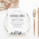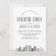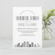 En unik inbjudan till repetitionsmiddag för ett bröllop som äger rum i den vackra staden Houston, Texas. Denna inbjudan har en stiliserad illustration av stadens unika siluett. Detta följs av din repetitionsmiddagsinformation i en matchande öppen linje-stil. Baksidan av inbjudan har en djup kolgrå färg för att komplettera utseendet och känslan. Dessutom finns det en plats på baksidan där du kan lägga till RSVP-information för dina gäster. Alla enskilda delar av inbjudningskortet är upplåsta så att du kan ändra eller lägga till nödvändiga detaljer med hjälp av anpassningsfunktionen. Ha kul och var kreativ och gör det till ditt eget!