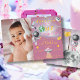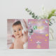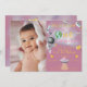 Baby födelsedag med astronaut, raketfraktaser, jord och stjärnor på mörkens rosa bakgrund. Vänd våra söta flickor inbjudan om att visa en samordnande skjutstjärna tillbaka. Besök vår butik för hela linjen, inklusive matchande raffle- och bok-kort.