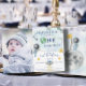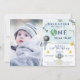 Baby födelsedag med astronaut, raketfraktaser, jord och stjärnor på mörk blått bakgrund. Vänd våra söta pojkar inbjudan om du vill se en samordnande skjutstjärna tillbaka. Besök vår butik för hela linjen, inklusive matchande raffle- och bok-kort.