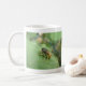 Detta vackra mugg har ett häpnadsväckande detaljerat foto av en fantastisk svart och gult-strimlad hoverfly som vilar på löv. Fotografiet togs med makrofotografi för ett fantastiskt detaljerat resultat.Utformningen visas på ett vitt baskaffe mugg, men finns också på flera andra stilar och färg i muggar.