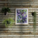 Pollinator Nature Art. An artistic capture of a striped hoverfly, resembling a bee, perched on the spiky purple bloom of an Eryngium thistle. The image beautifully illustrates the interaction between insects and flowers, set against a vibrant green and purple backdrop with soft bokeh. Perfect for nature lovers, subject like garden pollinators, thistle flowers, and natural beauty.