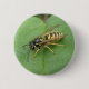 Den här vackra knappen innehåller ett detaljerat foto av en fantastisk svart och gult stripe-häckare som vilar på löv. Fotografiet togs med makrofotografi för en fantastiskt detaljerad och vass närbild.