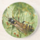 Den här söt sandstenen underlägg ett närfoto av en svart och gult färgad-väv på en hollyhock löv. Bild togs med hjälp av makrofotografi för att visa alla små detaljer, som t.ex. venerna i löv på hollyhock och mönster på vingar på hoverfly.