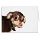 Chihuahua med en attityd, tunga ut som om det i ett bronxhälsningskort fanns lite utrymme för text