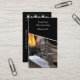 En visitkortmall med ett foto av hovslagaren som bultar hettjärn av en öppen smedja med, flammar framme.