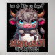 A funny and sarcastic colorful design showcases an adorable highland cow sitting with a coffee mug. The cow, with big blue eyes, a serious expression, a lipstick kiss on his gray fur, adds a playful touch. The vibrant text reads, "How do I take my coffee? Seriously! Very seriously." This design is available on a wide range of products, making perfect gifts for coffee enthusiasts.