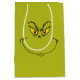 Put your presents in a bag with personality! This hilarious gift bag is dyed a brilliant Grinch-green and features a large, detailed graphic of the Grinch's classic, mischievous face—complete with those sly yellow eyes! It’s the perfect, funny piece of holiday packaging, giving the receiver a playful warning that the gift inside might just be a lump of coal!