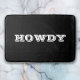 "Howdy" eller personifiera hälsning eller namn i fet vitt brev på svart.