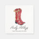 De här party-blöjorna har en vattenfärg porträtt i ett par röda cowgirl-skor med texten "howdy helgdagars".