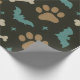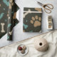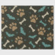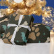 En lekfull Halloween-temad mönster med tass avtryck, teal fladdermus och spridda ben mot mörkens bakgrund. Med små stjärnor blandar den här designen sig av skämt och söt inslag - perfekt för djurälskare som tittar att fira årstiden med en liten bit stollig. Perfekt för förpackning av pappra, tyg eller tillbehör.